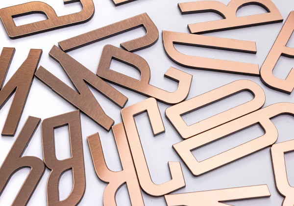 Буквы из пластика Rowmark изготавливаются на лазерном оборудовании, край реза получается четким, ровным и аккуратным.